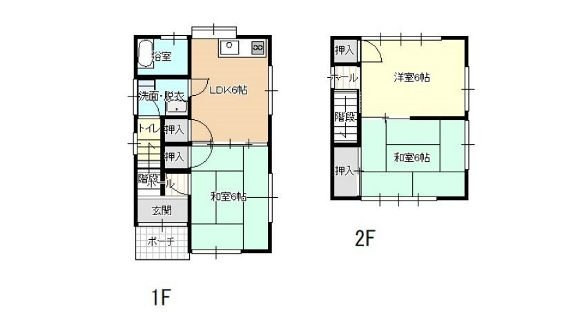 間取内訳 | 1部屋あたり 1階(6DK、6洋) 2階(6洋、6和) |